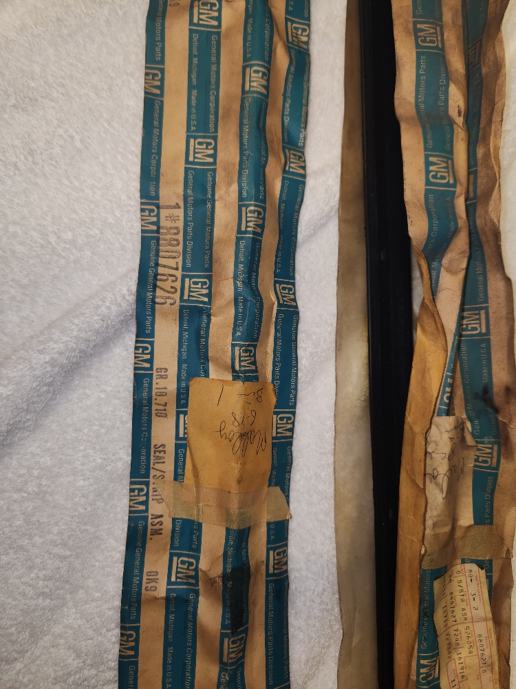 NOS 8807626 RH & 8807627 LH Outer Door Window Felt Weatherstrips had for a chevelle, i beleive these fit other cars. one of them have the hooked end the other does not.