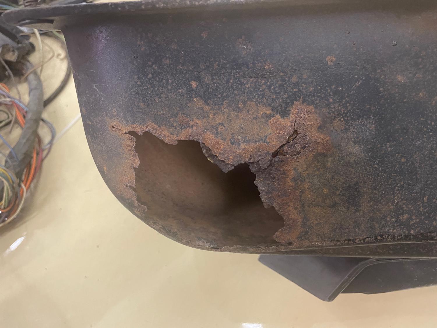 I'm restoring a 1967 BB Camaro that sat in storage about 40 years. The heater core must have leaked and gradually corroded the corner of the heater box (see pics). So, I'm in the market for a replacement heater box. Note that it is a big block box (the BB heater core is bigger then the SB). Please PM me if you are willing to part with one. Thanks