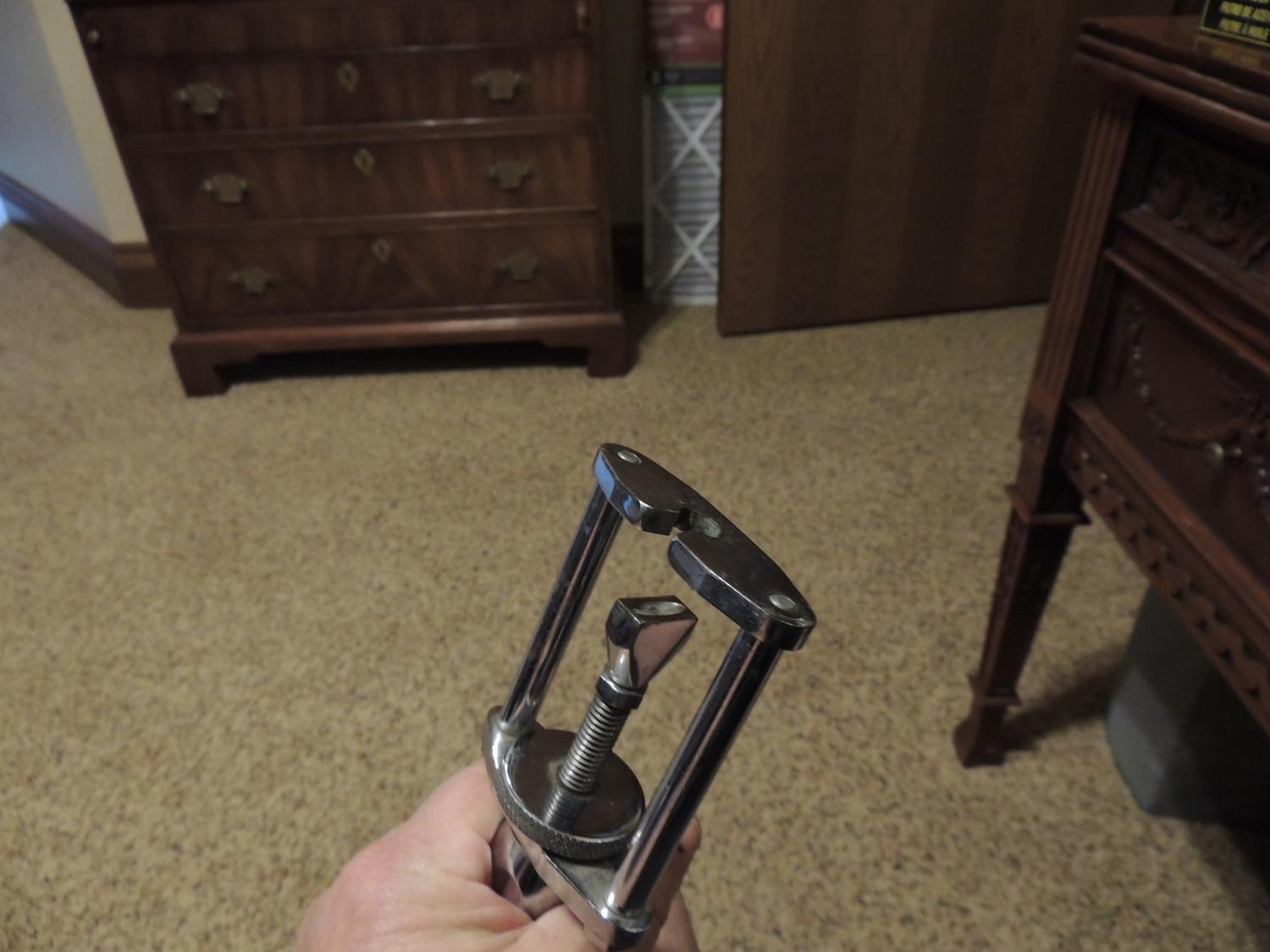 My guess would have been a fixture for adding thimbles to wire cable. I learned how to do that while in A&P school a long time ago. That would preload the cable around the thimble so you could install it tight. Lots of fun to use, think of shanking hands with a porcupine over and over again. Being chrome that was probably commercial grade and pretty pricey in the day.