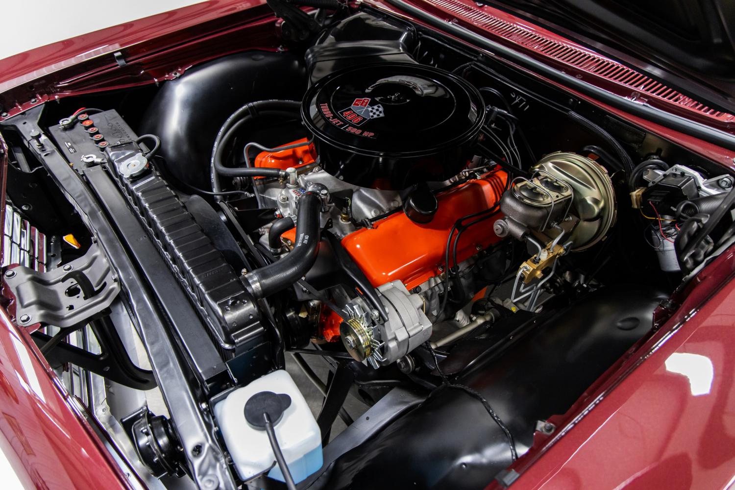 The factory-like engine compartment is highly detailed throughout. The firewall, inner fenders and radiator support was re-finished in satin black. Items like the windshield wiper motor, windshield washer fluid container, GM hoses and Delco battery topper keep the original looking appearance. The heart of this car is a new 496 V8 engine that was dyno tuned with 562 horsepower and 624 lb-ft torque. The engine was installed by MS CLASSIC CARS and a dyno sheet is included. It was built by well-known Nat's Engine located in Swansea, MA. This objective with the engine was to build it to have high horsepower but be 9.9 to 1 compression so it would run excellent on pump gas. Some of the engine details include an Eagle stroker kit including the crank and rods, Mahle forged pistons and rings, Comp hydraulic roller camshaft, short travel Comp lifters, double roller timing chain, Powerband Race Performance harmonic balancer, Edlebrock Performer aluminum heads, Competition Pro Magnum rockers, Edlebrock Performer air gap intake, Milodon 7 qt. oil pan, GM ZZ502 aluminum water pump and Carter HP fuel pump. The engine was dressed with stock orange valve covers and unique Cowl Plenum Air Cleaner. The air cleaner was decorated with a custom made 496/560hp decal. It's setup with a new AED 750 CFM carburetor, Pertronix electronic ignition system and factory distributor. The engine is cooled by a new factory HD radiator with clutch fan. This engine has never exceeded 180 degrees. The engine breathes through 427/425hp factory manifolds with factory replacement Gardner dual exhaust system. The engine is coupled to a new Tremec TKX 5-speed manual transmission that was installed by MS CLASSIC CARS. It's equipped with a McLeod flywheel, McLeod Street Extreme Clutch and Performance Parts offset shifter with Hurst shift handle. It's also equipped with a custom steel driveshaft with Billet Yokes and 1350 U-joints. The power is transferred to the GM 12-bolt Eaton Truetrac rear end with 3.73 Motive gears that was installed by MS CLASSIC CARS.