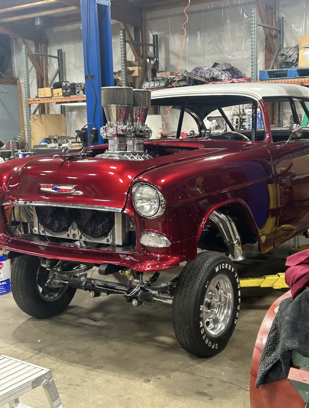 I found this '55 for Dad a few years ago. It was a 265 powerglide car. He has had several in his lifetime and wanted one last car to fix and drive. We were going to build it together. His health has gone down and he's not able to work anymore and decided to sell the car. I told him that I wanted it, so he gave it to me. I would love to get it together in time for him to drive it, but I don't know if that will happen. He wanted a 327 in it, so I built a nice mild one to go in it, along with the M20 that I built for my Camaro many years ago. I'm narrowing an Impala 12 bolt for it with 3.55 gears. The frame is finished and new floor is installed. I just have to finish my shop so I can get the car done.