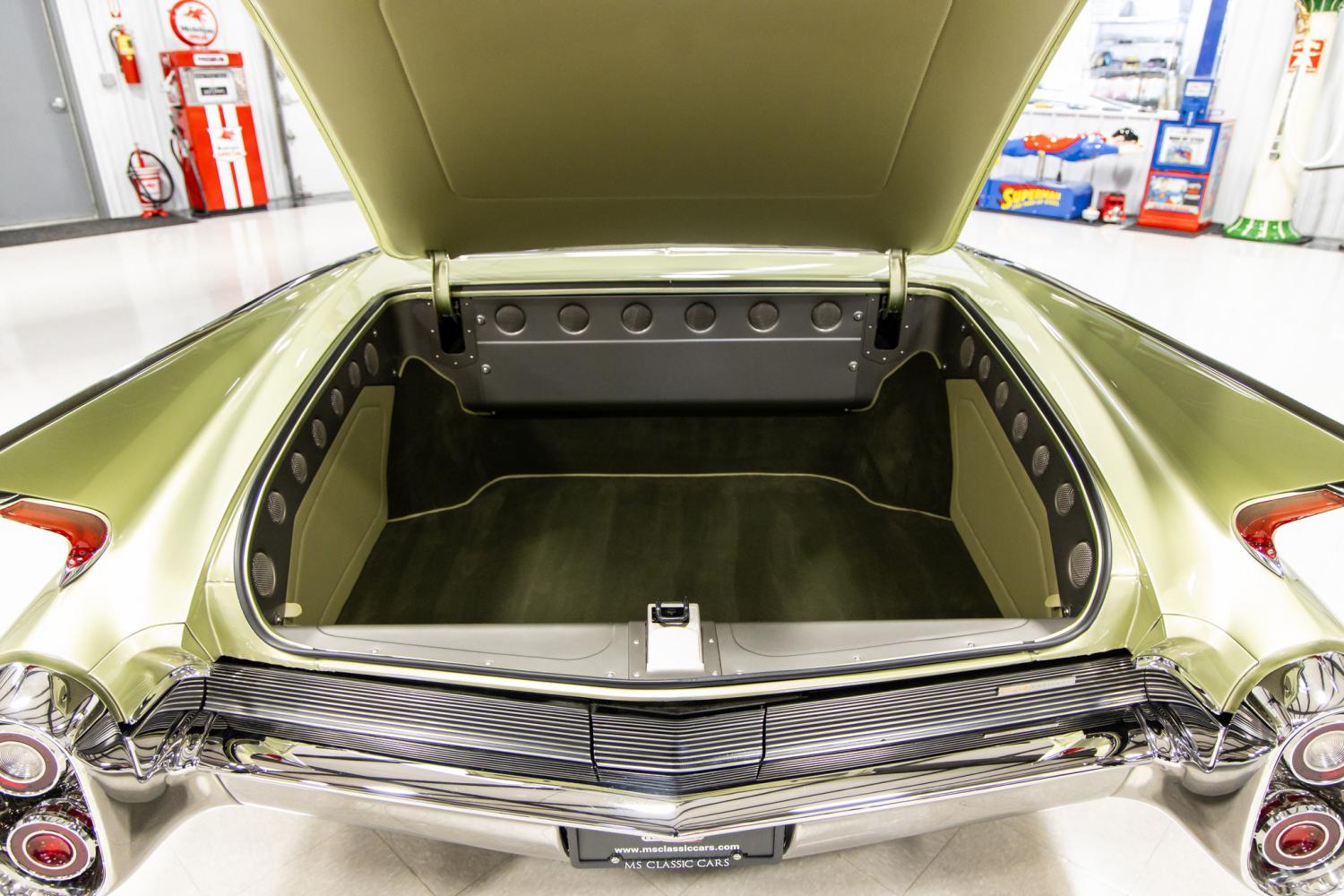 Watch This Video **THIS VEHICLE IS SELLING WITH NO RESERVE AT THE UPCOMING BARRETT JACKSON AUCTION BEING HELD IN SCOTTSDALE, AZ JANUARY 18-26, 2025. IT'S SELLING ON SATURDAY JANAURY 25TH AND THE LOT NUMBER IS #1347. IT'S A QUICK AND SIMPLE PROCESS. YOU CAN BID IN PERSON, ONLINE OR OVER THE PHONE. PLEASE CALL WITH ANY QUESTIONS. THANK YOU** Dubbed, “Envious”, this 1960 Cadillac Series 62 Custom Coupe is rolling artwork with its streamline and elegant design. It's powered by a new Chevrolet Performance LS3 V8 crate engine with Wegner Automotive 2.9 Whipple Supercharger and 4L80E automatic transmission. It was the product of a meticulous build that was finished in 2024 by MS CLASSIC CARS. Since completion it's never been exposed until now. The vision of this build was to design the ultimate American classic luxury car with the ultimate drivetrain. The insight and innovation resulted in this masterpiece. During the refurbishment process every piece was meticulously restored or replaced new. The straight body retains all of its original sheet metal and has excellent panel fitment. The mirrors, marker lights, door handles, key cylinders and front bumper were shaved for a smooth appearance. It was painted with PPG Ford Lime Gold which dresses the gorgeous bodylines. The show quality paintwork was recently detailed to a high level. It was outfitted with all new tinted glass which is crystal clear. All the stainless and chrome plating was professionally restored. The front grill was re-finished in black with chrome bullets. The car has a great stance on 18” Colorado Custom Stella polished wheels with Diamond Back whitewall tires. The hand crafted custom interior fit and finish work is second to none. The custom headliner and sun visors were upholstered in Sage Green suede. During the transformation the glove box and ash tray were removed. The custom 1965 Ford Thunderbird bucket seats, matching rear seats, kick panels, door panels, full length center console and rear package shelf were wrapped in Sage Green leather with a decorative material throughout. The dark green plush carpeting and molded floor mats with leather piping blends in beautifully. Some interior custom features include Cadillac engraved door sill plates, Dakota Digital instrument panel, Flaming River tilt steering column, Con2r 3-spoke polished steering wheel, LED shift indicator, Vintage Air Conditioning, Custom Autosound AM/FM/Bluetooth stereo, Nu-Relic power vents and windows, storage compartment, front and rear cup holders. The trunk compartment was boxed with fabricated steel painted panels and circle vents. The side panels were upholstered in suede and are magnetic for quick removal. The engine compartment is highly detailed throughout. The painted firewall is CNC machined from aluminum. The painted inner fenders and radiator support panel are fabricated steel with bead roll designs. This car is powered by a new Chevrolet Performance LS3 V8 crate engine. The engine was outfitted with a Wegner Automotive 2.9 Whipple Supercharger, serpentine system and Cadillac engraved valve covers. The engine is cooled by a HD radiator with SPAL electric fan that is enclosed by a fabricated steel painted shroud. The engine breathes through custom headers and 2.5” dual exhaust system. The engine is coupled to a GM Performance 4L80E automatic transmission and 9” rear end housing with 3.55 gears. The undercarriage is also highly detailed throughout. The original chassis was modified for the one piece driveshaft and all the mounts were fabricated. It's equipped with Ridetech air ride system and Baer 4-wheel disc brakes with 6-piston red calipers. This car has been completely serviced and detailed which is documented with an invoice that's included. This well-engineered Cadillac is an absolute pleasure to operate. It's one of the best ever offered from the MS CLASSIC CARS Collection. Last edited by msclassiccars; 12-30-2024 at 06:52 PM. |