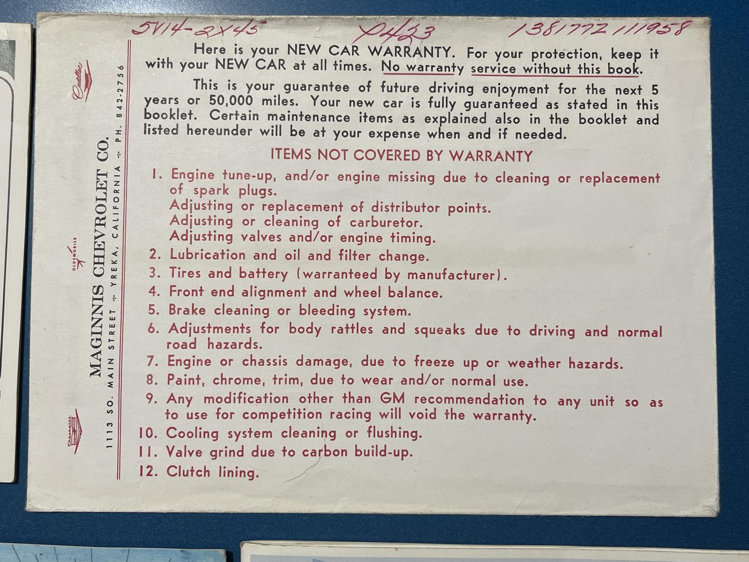 Hi Guys, here is a neat collectible. An original 1967 Chevelle owners manual and related glove box literature. It’s a 1st edition owners manual that has some stains on the covers. Also included is the original window sticker, warranty book/protect o plate. Decodes to an SS 396 engine. Engine code is EM - 396/325 HP with automatic transmission and A.I.R. Smog system aka California emissions. Window sticker has been folded in a few places and has some tears at these folds and small pieces missing. Price is $225 plus $10 to ship. US shipping addresses only please. Payment by personal check or money order only. Thanks Rob