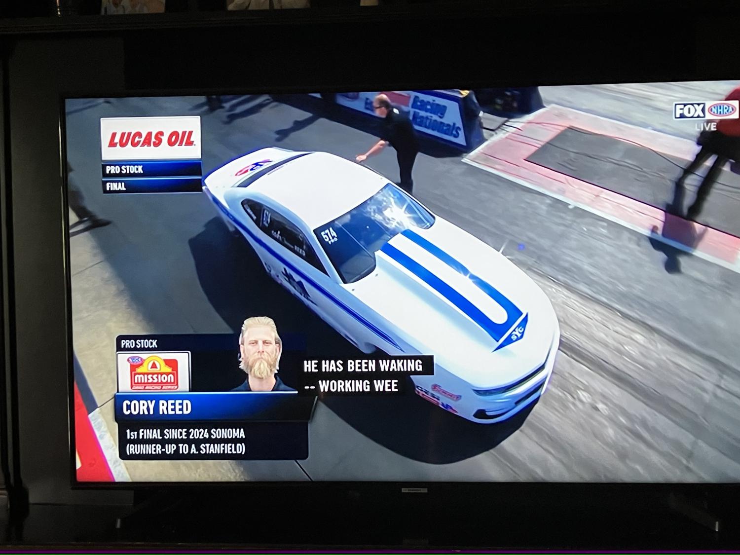 Watching NHRA racing on TV. A white Camaro with sYc on the hood and Yenko SC stripe down the side won Pro Stock. Cory Reed, his first ever final round NHRA win. 😎 cool 😎