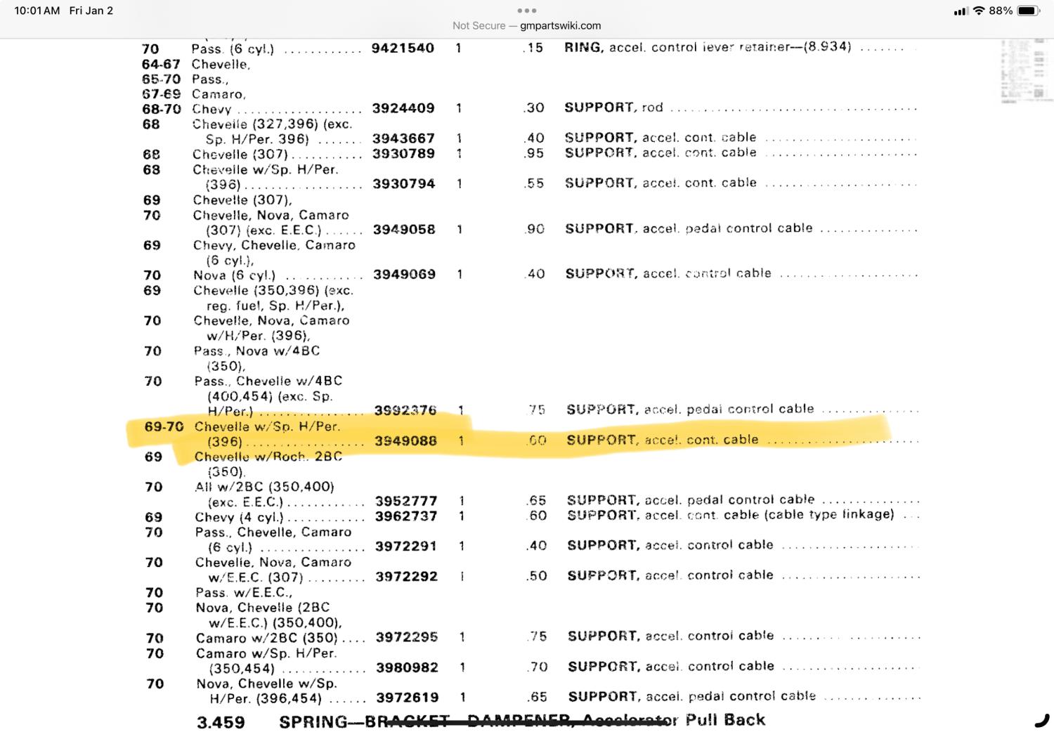 They were specific, and the part no. should be 3949088 and stamped on the forward facing area between the cable and the carb bolt.