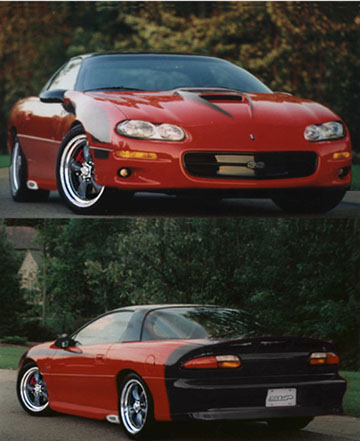SS350 -SS350 paint scheme -Hurst shift knob, white -American racing wheels and tires -Lowering springs -Cat-back exhaust -Airbox with K&N -White guages -Emblems -Numbered plaque Total $6,000 SS350 II -SS350 options above plus; -Brembo brakes -Bilstein suspension Total $10,000 SS500 -SS350 II options above plus; -Engine: Stage II LS1 heads Custom ground cam Computer recalibrated LS6 intake Ported Throttle Body Ported MAF Headers Install (gaskets, lube, etc.) -Interior: Z06 style two-tone leather with SS500 embroidery -SS500 paint scheme -Moser 12-bolt 4.10 posi installed -Centerforce Dual-Friction clutch -'60's style grille that the new ZL-1 uses -Rollcage leather wrapped -SS500 numbered plaque -SS500 logos -Whitefaced SS500 guages -Hockeystick Stripe Total: $21,410 |
