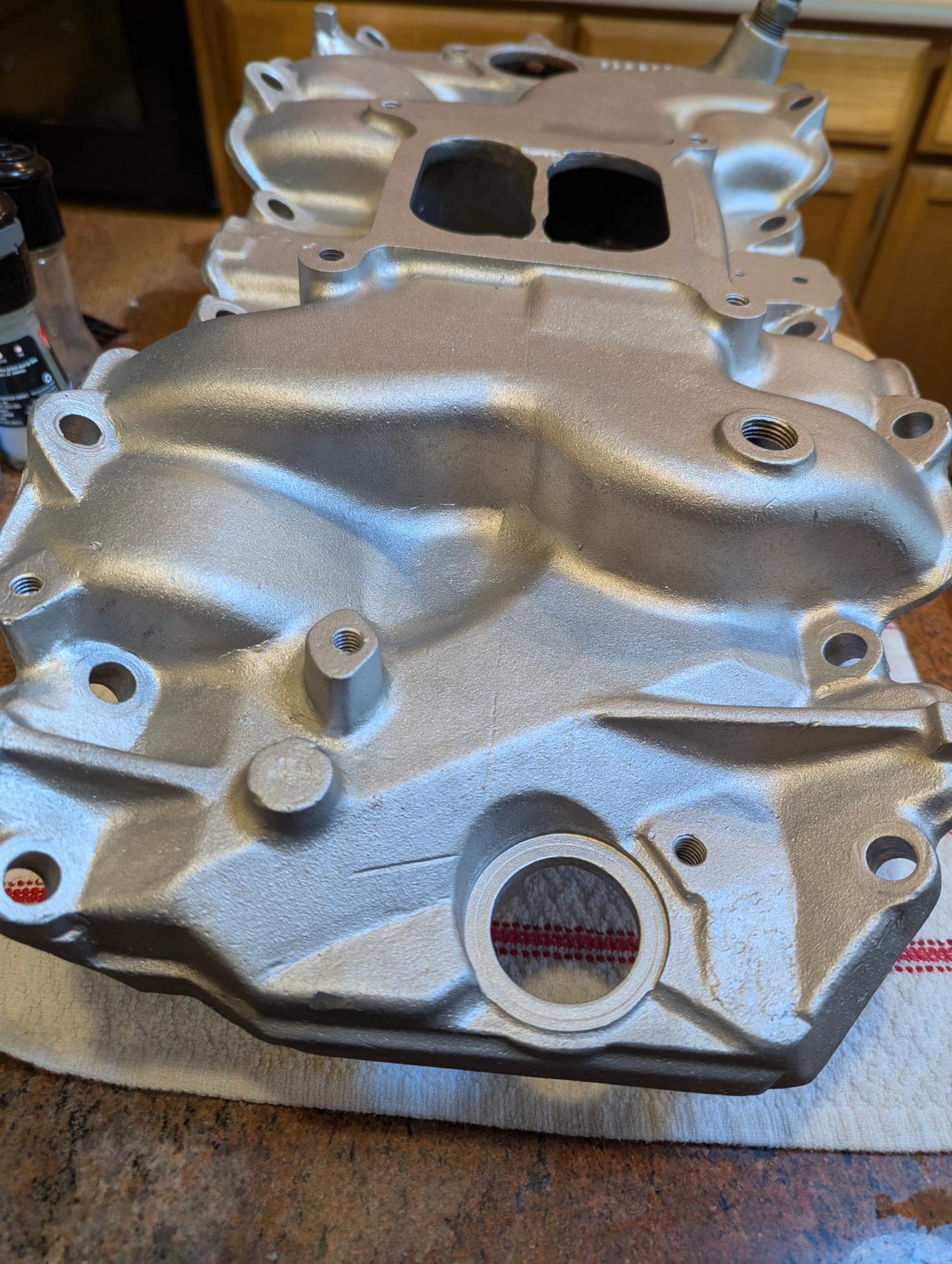 I'm "thinking" that sand cast parts were run thru shot blasters (Wheel-A-Brator) when they were 1st mfg.........and I believe that short (under 5 minutes) periods in a shot blaster would make a sand cast manifold look like NEW again.........We shall see !!!!!!