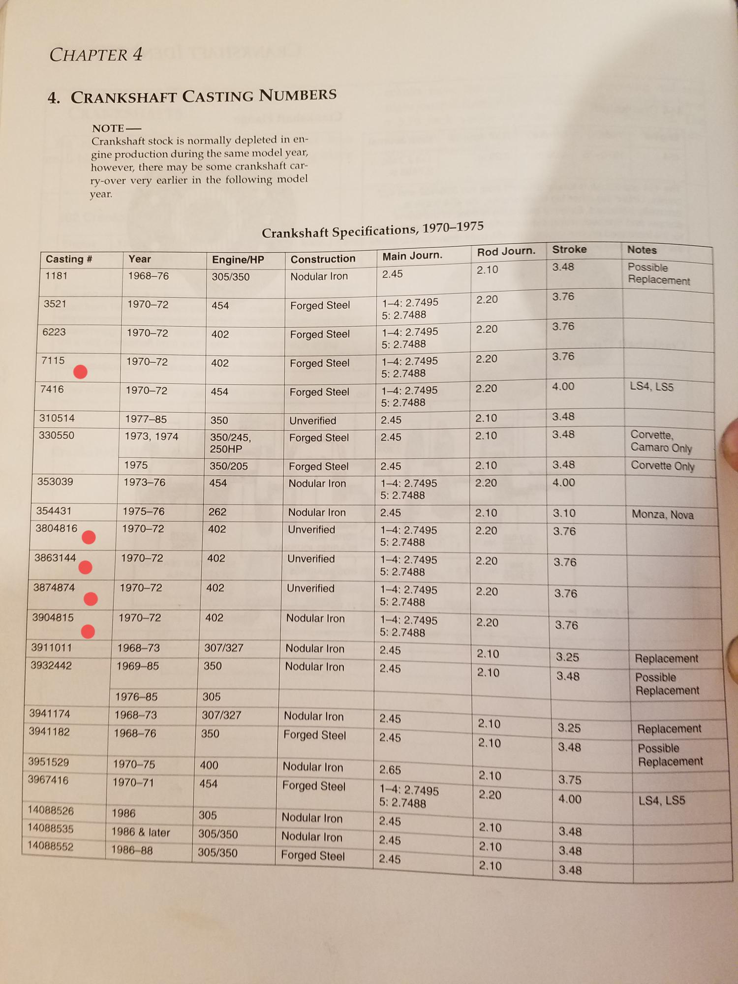 Yesterday went to a big swap meet and picked up two 6223 BB forged cranks. Mortec says they are for a 396 -> 427 so I think I made out ok. My question is what is the difference between all the different cranks that are listed. I suppect that these are just a HD truck crank and not really a hot rod crank.