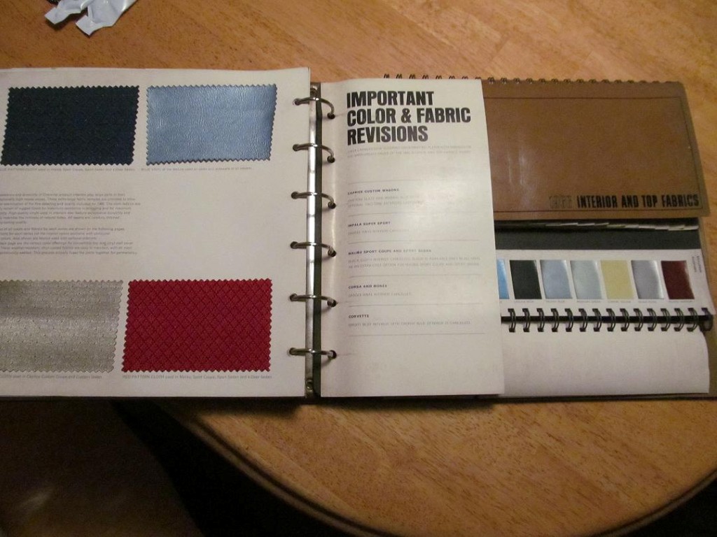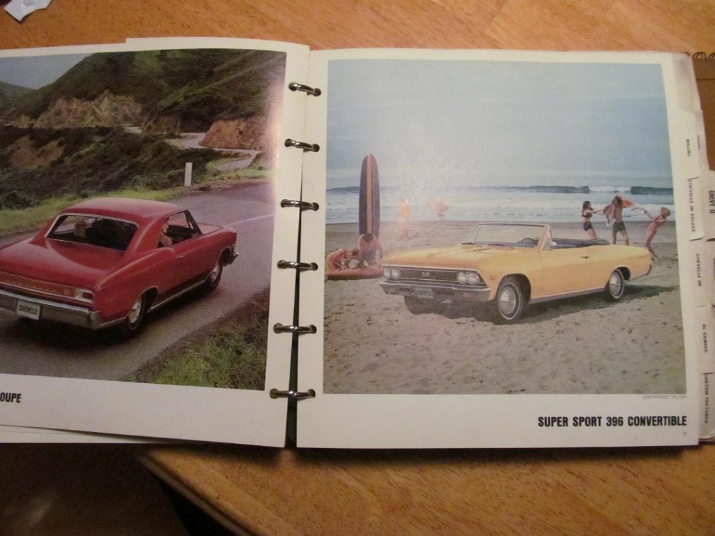 large binder,covers all 66 models,actual interior and paint samples. tires, SS cars,all models. Nice shapr,some curling as shown but no tears or spills etc