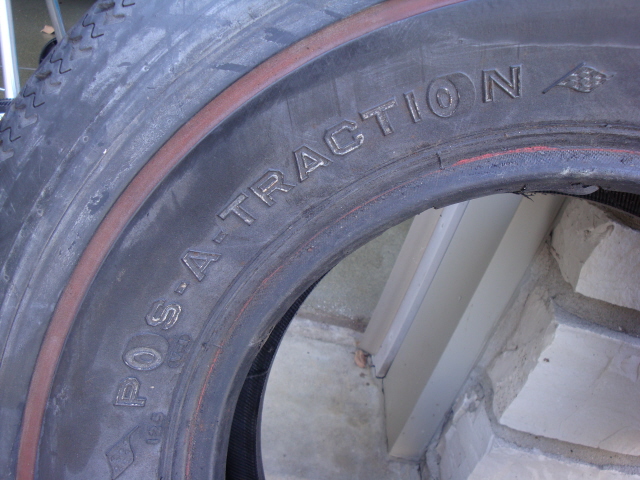 A pair of vintage Pos-A-Traction 'Torque Master Tread' J70X14 tires. Has red line on one side with white line on other side. Manufactured by Inglewood Tire.Red/white lines need cleaning. Been in my garage for years. Good tread. Perfect for that Day2 look!. $250.00 plus actual shipping cost to your zip code.
