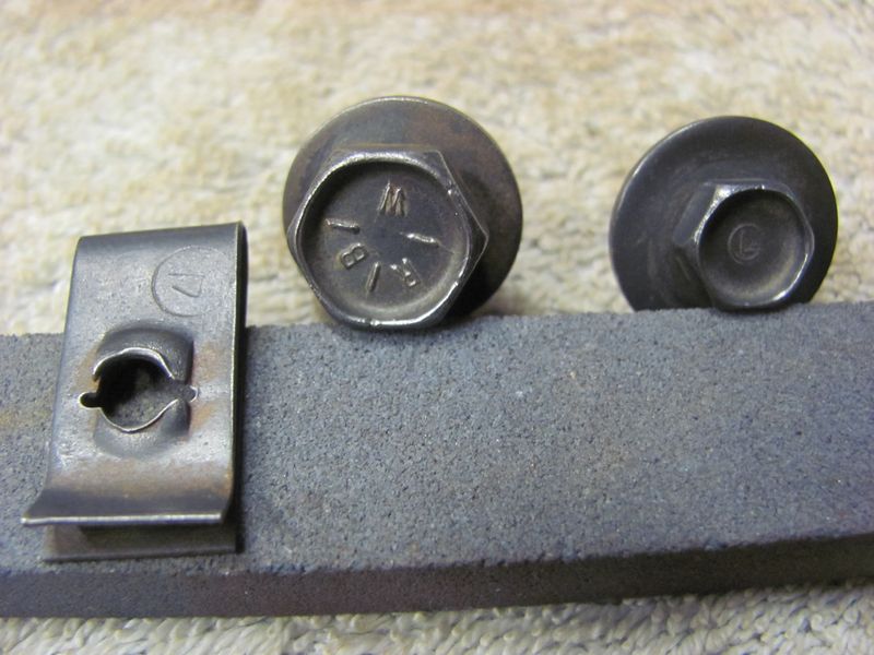 68-72 big block Nova top fan shroud bracket hardware. 1 GL bracket to shroud bolt, 1 U-nut for GL bolt (stamped 4 in a circle) 1 RBW bracket to radiator support bolt. 45 per set (2 sets)