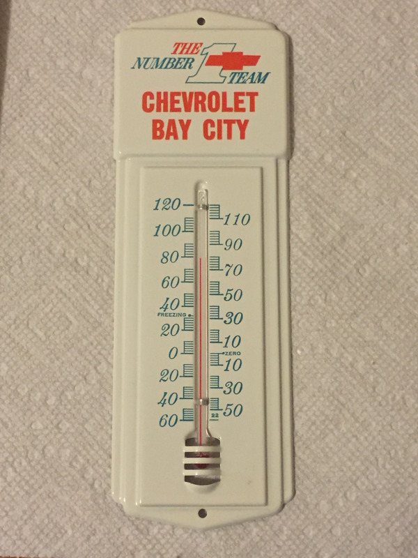 Hi All, For sale here is a great item I've had for about 10 years. It is an NOS in the original box, absolutely mint 1960s era Bay City Chevrolet Number 1 Team thermometer. It is as rare as rare could be. In perfect condition.