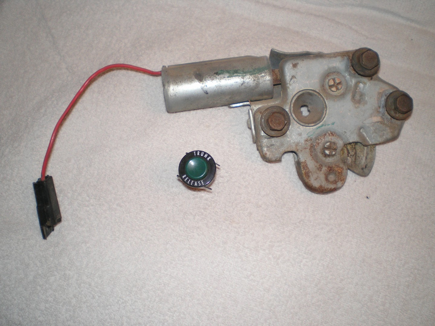Electric Trunk release with the hard to find 1970 green button switch back up for sale. $80.00.