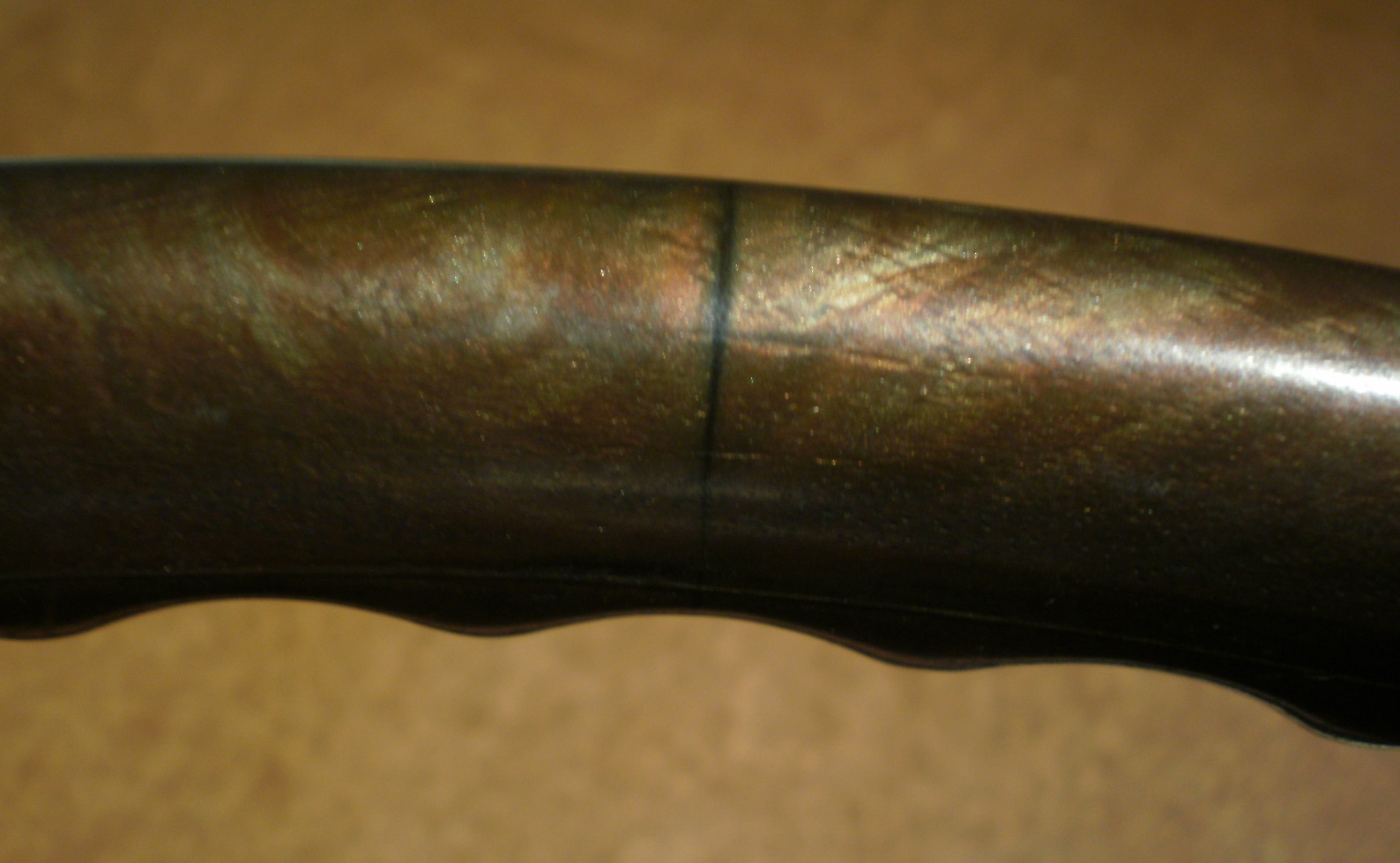 Real GM One piece Plastic Walnut Standard Steering wheel for the 1964 1965 and 1966 Corvette. One piece design for the center stainless steel. One crack at the 6 O'clock spot but still very nice if you want an original GM piece. 12 O'clock position still has the solid factory join line in place. Crack can be easily repaired and filled or leave it "As Is"