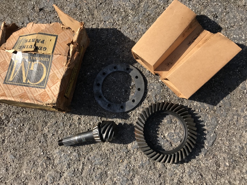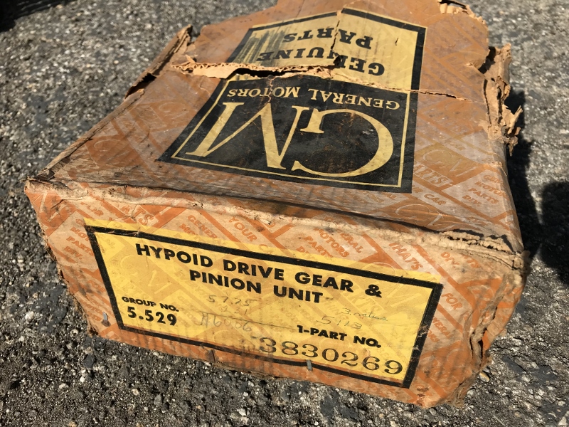 The NOS box is from the replacement 5.13 gears that were put in the car back in the day, what I have here are the (USED) original take out 4.56 gears from the car. This is how they've been stored for more than fifty years! 9 / 41 They are: 3720089 ring dated 10 61 3720090 pinion dated 9 61 I only have 8 of the original bolts but will include them. $150 shipped to the 48 PM with questions, thanks sYc. Anthony Last edited by AnthonyS; 05-11-2018 at 12:49 AM. Reason: lower price |
