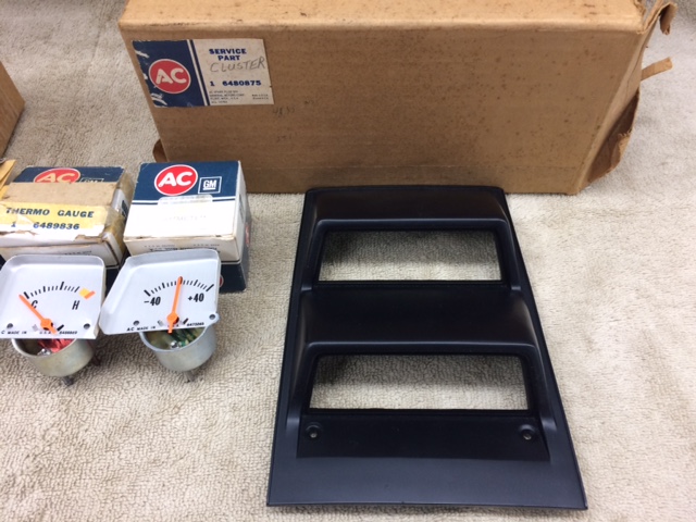 6480875 cover…..1 pc 6480876 base…….1 pc 6489836 temp. gauge……..1 pc 6473265 amp gauge………1pc 6431022 fuel gauge……..1 pc Oil gauge……..N/A 6480884 cluster indicator (fuel/oil)……..1 pc 0000000 cluster indicator (amp/temp)……..1 pc (used) 6480882 cluster cover lens……..2 pcs Price $400 or best offer |
