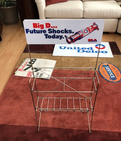 Very cool 1970s AC Delco Big D Shock absorber stand. Original paint and colors. Very nice plating. I'd imagine not many exist today. $150 plus shipping.