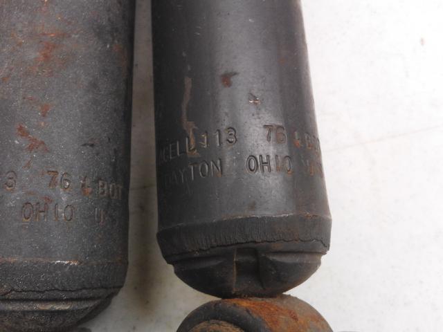 4984575 Pliacell front shocks dated 113 76. Excellent survivor condition, I believe tags read C H. Shafts are very nice with great in and out resistance. Top ends have virtually no rounding and grey paint remaining. $100 shipped to 48 states PP F&F.