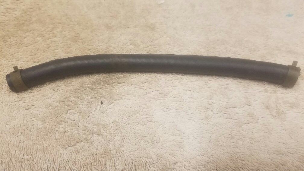 Original day one take off alligator skin 3 rib 3/8 in fuel line with unrestored olive green square tab clamps. 9 and a 1/4 inches long As nice as you're ever going to find perfect for a Survivor or Concours car. Still pliable and will bend does not crack. SOLD $150 shipped to the lower 48 if paid with PayPal friends and family. SOLD