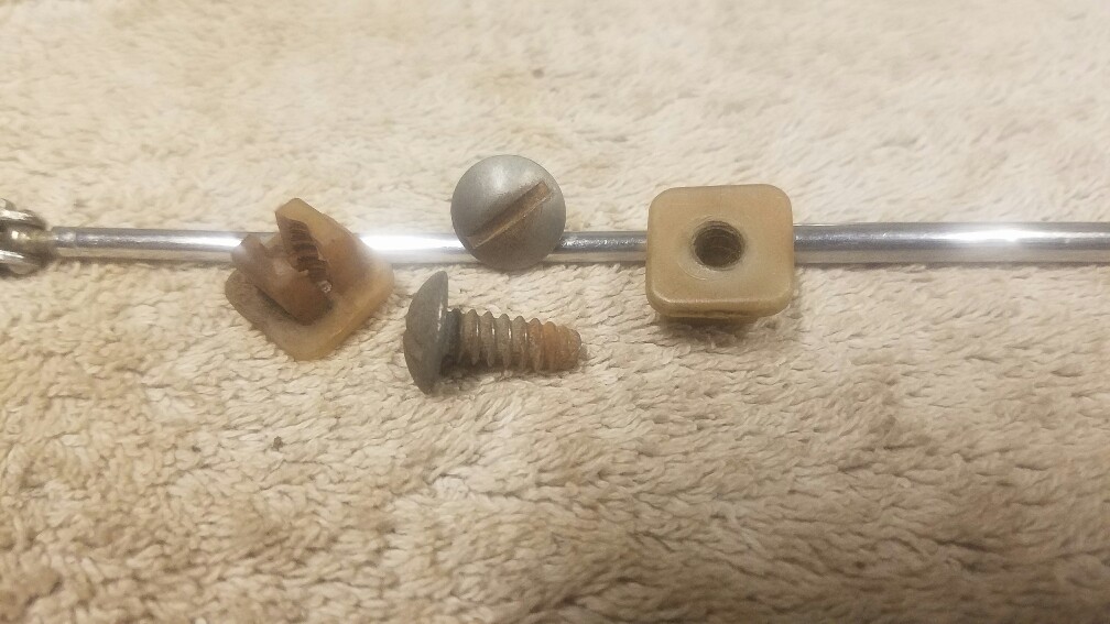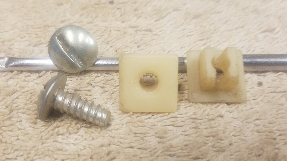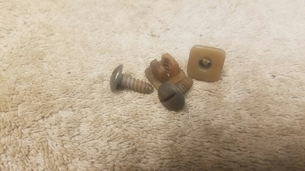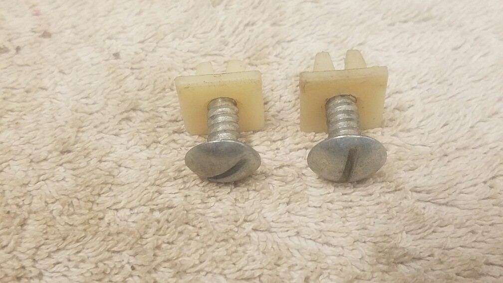 Original front and rear license plate nylon push nuts and screws. First-set are NOS screws and inserts second set is a very nice used original set with great patina for a survivor. $35 a set shipped to the lower 48 if paid with PayPal friends and family.