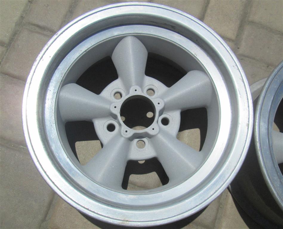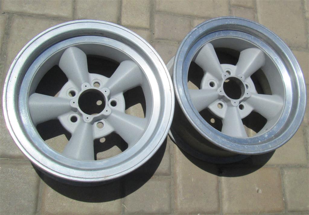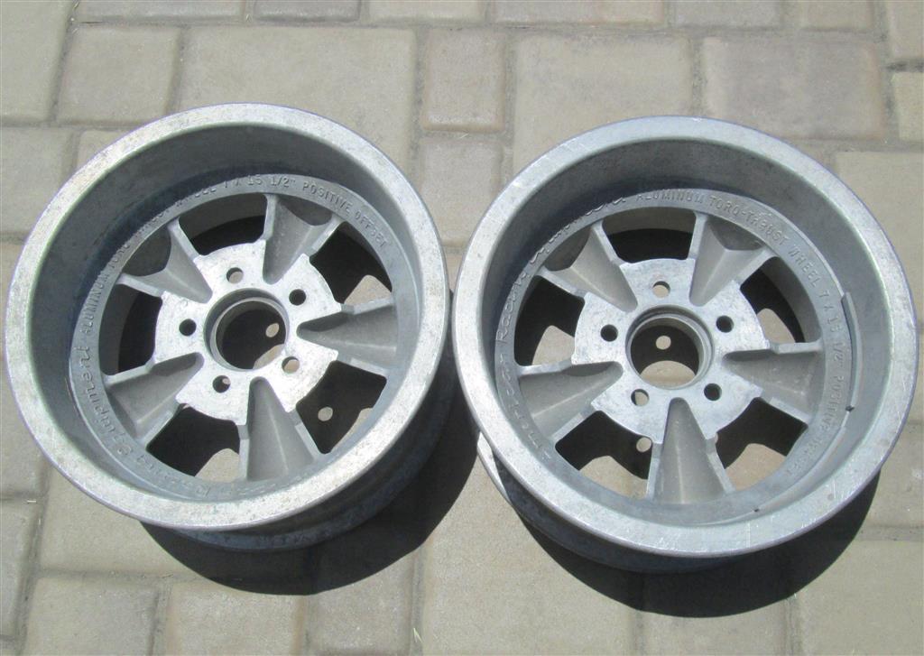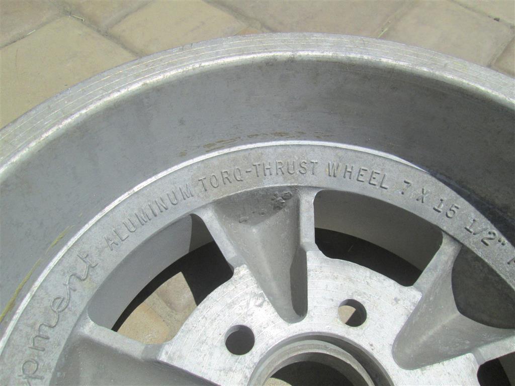 This is a pair of vintage American Racing straight spoke Torq Thurst wheels. These are real deal vintage wheels and have a 5 on 4 3/4 bolt pattern which works with most GM passenger cars. The wheels are in awesome shape with no curb rash, corrosion, or other damage. The center area is currently bare aluminum and could be left as is or painted.