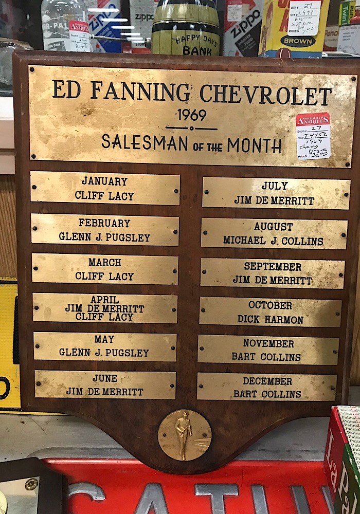Good stuff Bill. Love the connection! Bet the dudes on this plaque collectively sold some cool muscle cars in ‘69. “Hi” to Marilee!