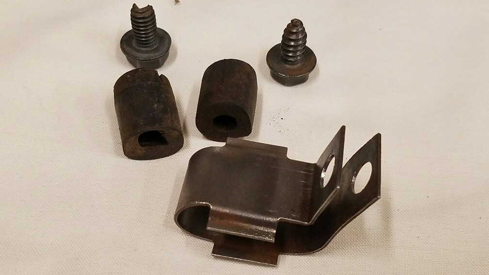 Brake line to frame insulators bracket and mounting bolt. The anchor head marking bolt is used on a bodies and the ER head marking bolt is used on F bodies and Novas. Excellent original bracket with C stamping on it. $25 shipped to the lower 48 if paid with PayPal friends and family