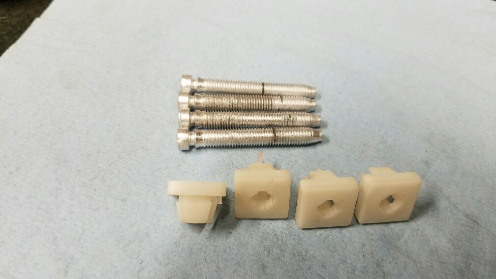 69-up original headlight adjuster screws and NOS nylon inserts. All the replacement and reproduction screws have a concave head by the Philips slots. The originals are convex and bow out a little bit. Very noticeable when installed. $25.