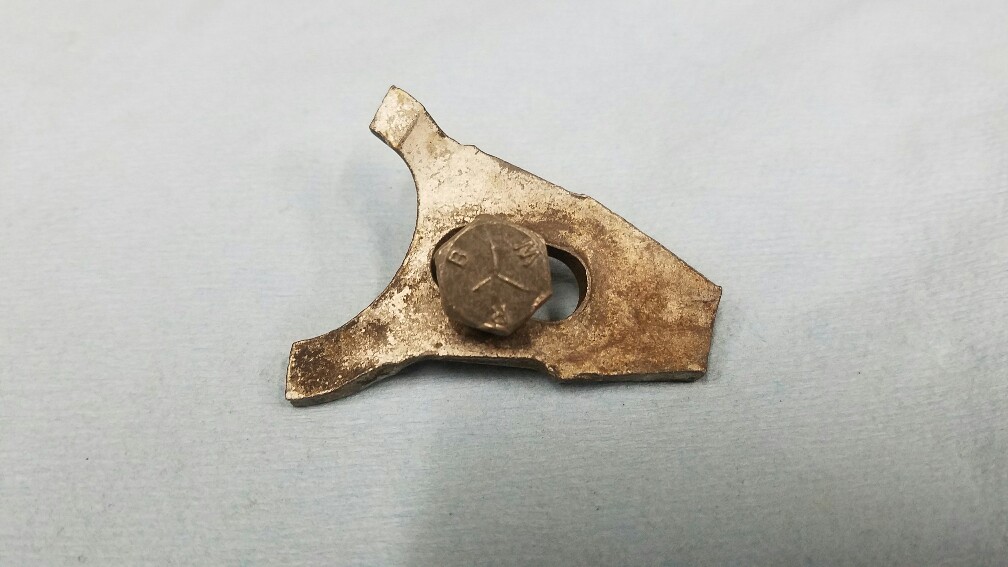 Exceptionally nice s stamped plates dial distributor hold down clamp and SB head marking bolt. $25. Ppff (X)