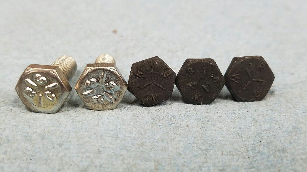 Excellent restored smog pump pulley bracket bolts with RBW head marking and diverter valve mounting bolts with RSC head marking. As nice as you're going to find. $35. PP FF (x)