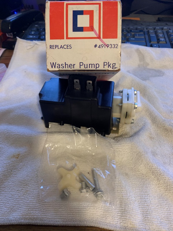 New GM #4919332 windshield washer pump in box, complete with instructions and all parts as shown. This is the white version as many are black now. Made in the USA. I have two available for $75.00 each. Free shipping on these. Thanks for looking