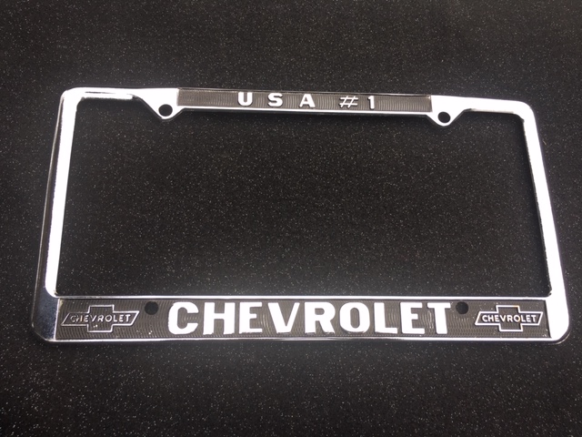 Old, excellent original condition USA-1 CHEVROLET License Plate Frame. The top holes