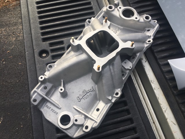 Early BBC Oval port Edelbrock intake manifold. As you can see in the photos