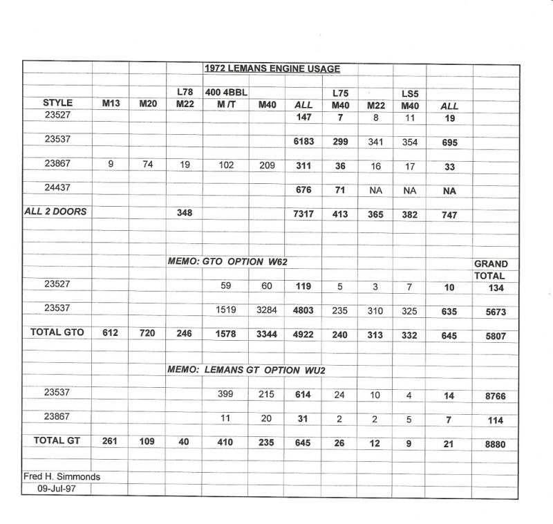 It looks like whoever ordered your LeMans wanted a GTO, but without the GTO nameplate that would have kicked up their insurance rates. They ordered the Endura Styling Option, 400 4-bbl, G70x14 tires, Springs & Shocks, all part of the GTO package. Mike