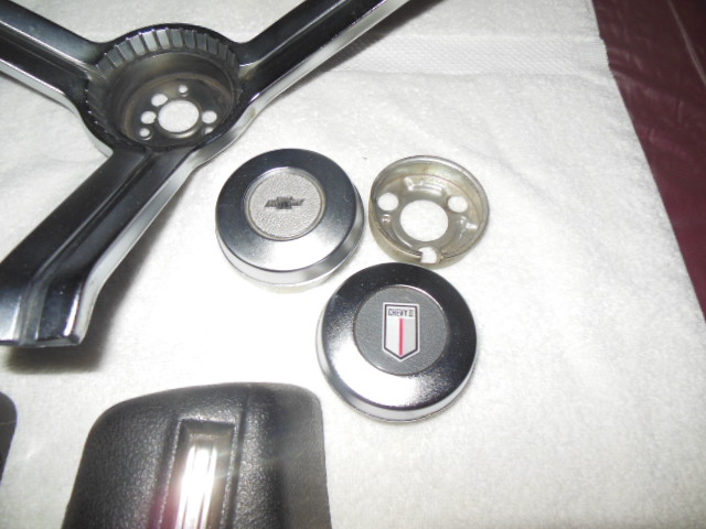 super nice original Camaro nova horn caps and center trim trim $50.00 caps $35.00 each plus shipping