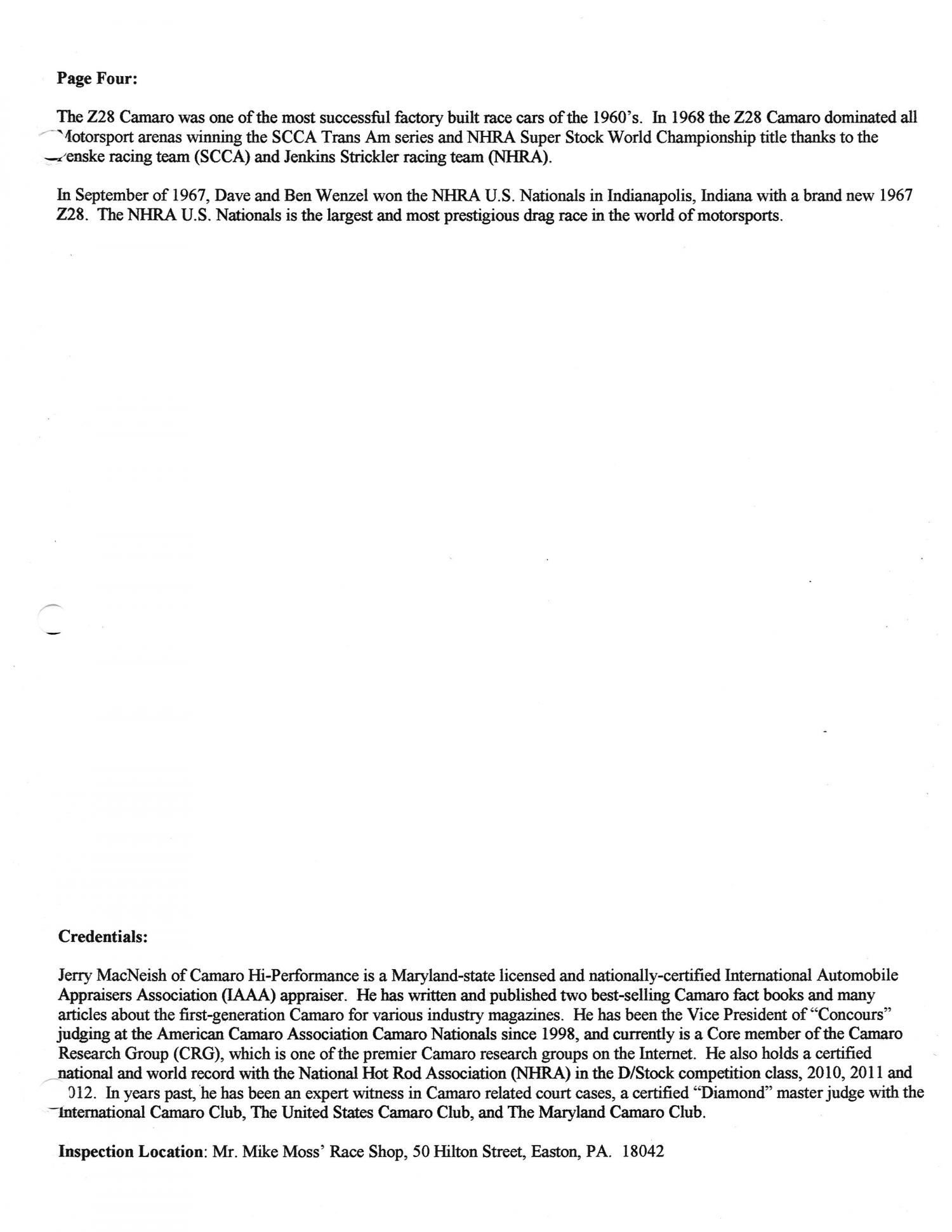 Please post your pictures showing the pad stamp, VIN #, transmission stamping, and rear-end dates. In addition to page 2 of the report, it would also be nice to see the dates and stamps on the engine peripherals such as the alternator, carburetor, brake master & booster.