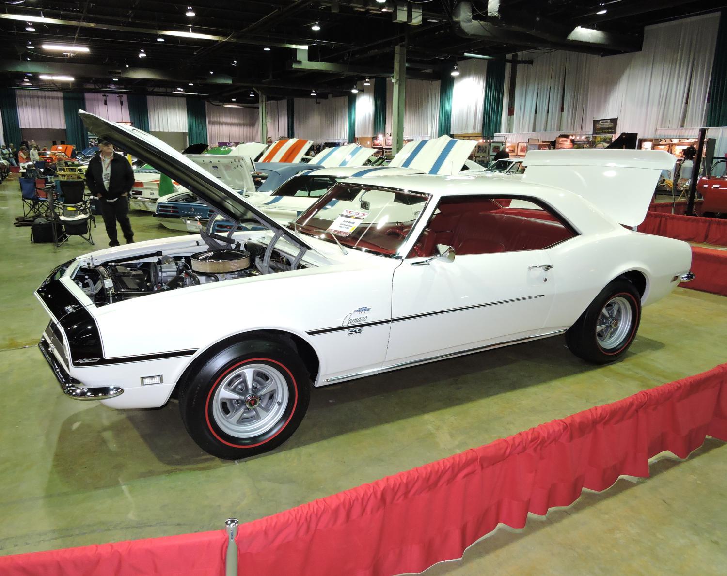 #152 This 68 Yenko Camaro is YS-8023 and was sold new a Branine Chevrolet in Mulvane KS. It is the only known Ermine White 68 Yenko Camaro and the only one with the Special Drag Car tag. This car still has it's original transplant block that is backed by a M-21 and a 4.10 rear. This car was originally restored in the early '90's and appeared in the October '92 issue of Chevy Action when it was owned by M. Price. K. Suydam has since purchased the car and had it restored by the Super Car Workshop. It made it's debut in the 50th Anniversary F-Body Display at MCACN in '17. It was also featured in the May '19 issue of Hemmings Muscle Machines and in their '19 Calendar.