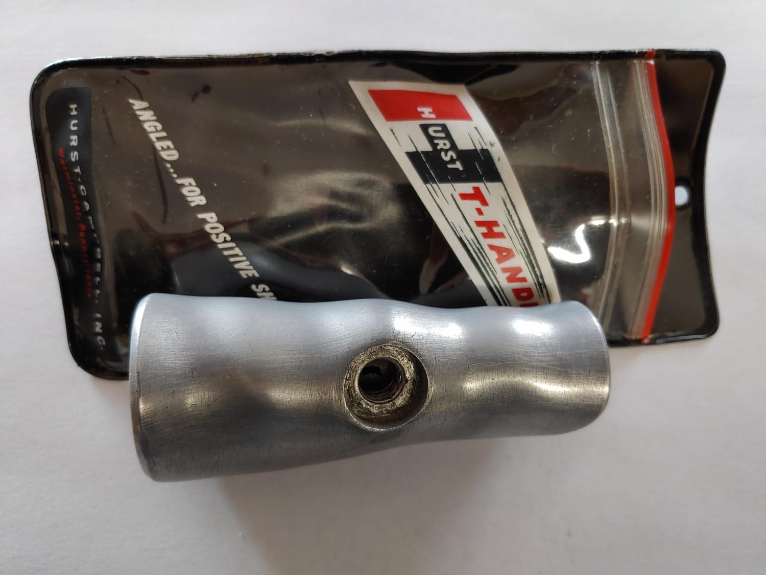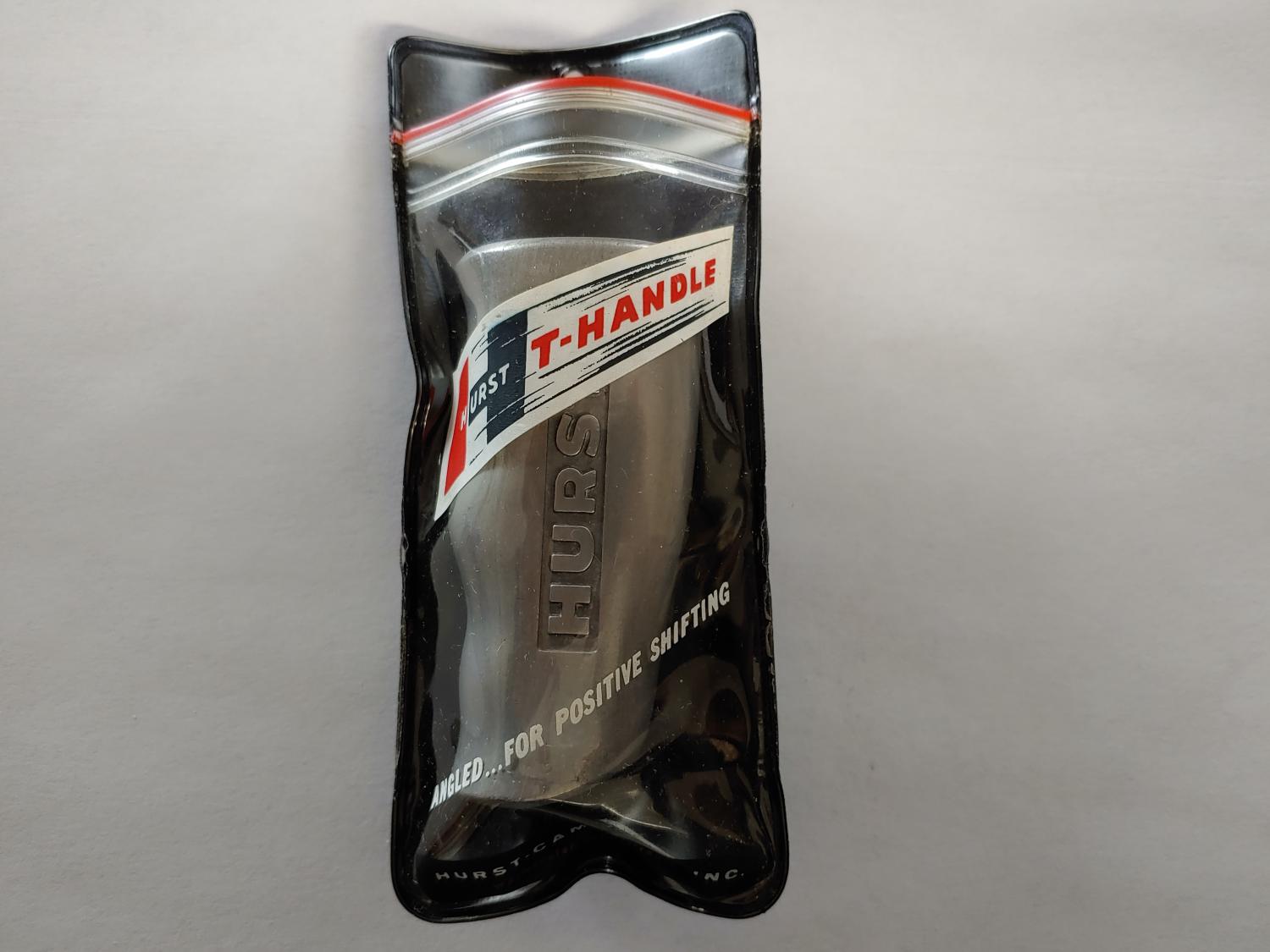 Hurst Shifter Handle. Used but in excellent shape. With the rare merchandise pouch, nut and washers. Pouch is in excellent shape.
