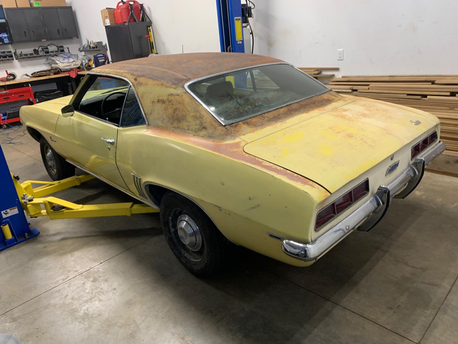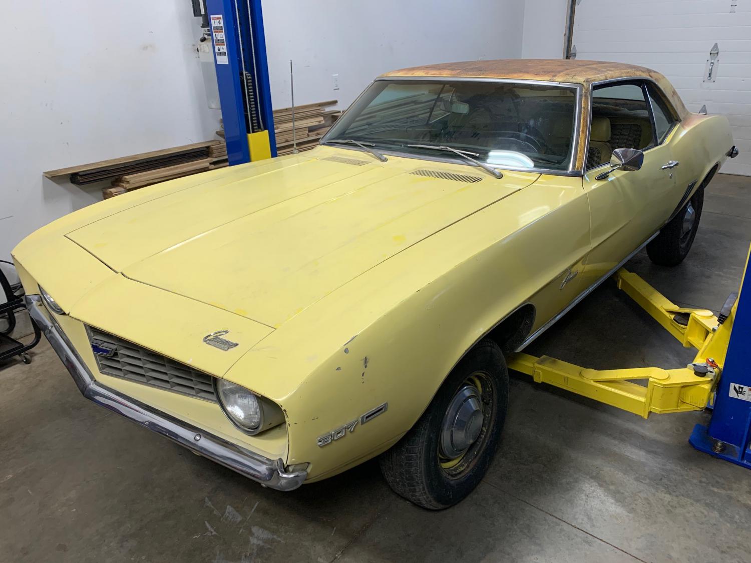 1969 Survivor Camaro X11 Factory PS/PB Disc front A/C deluxe hounds tooth yellow interior. Rare Norwood built X11 that lived in California. Recent Barn Find pretty much untouched outside of someone removing the A/C evaporator Box and engine A/C components. I bet the build sheet is still somewhere... Everything else is original. The factory yellow paint is behind the black on the original steel wheels. it runs/brakes/and drives in the parking lot. I cant road test as we are in Iowa and still have snow. Door buzzer still works! Original radio and speaker. this car has never been apart Someone put a aftermarket vinyl top on so there are pin holes in the roof. Roof will need fixed and also truck had a mat so there is rust at the bottom of the trunk. gaps on this car is amazing hardly a dent anywhere. Rare to find high option untouched 69 like this. Original exhaust was almost gone so I put a newer chambered exhaust on it off a 69' Z28. Located in Iowa. I also have a 2010 LS3 and parts with 25,000 miles that can go with for additional $5000