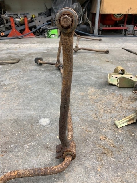 -one NOS sway bar spring perch -one modded (was NOS) sway bar spring perch. (ran on the mini tubbed Nova for a few years... will rework back to stock configuration) -several bars all the same -two different styles of uprights QUESTION IS; Which uprights would be correct for 71-72 Nova ?? Lower clam shell straight down or 90 degrees The 90 degree uprights have a little dog leg offset to them. All dimensions check out -center pins 43" (matches the diff) uprights approx. 25-1/2 centers (matches the body) Thanks for any input guys ! Gary