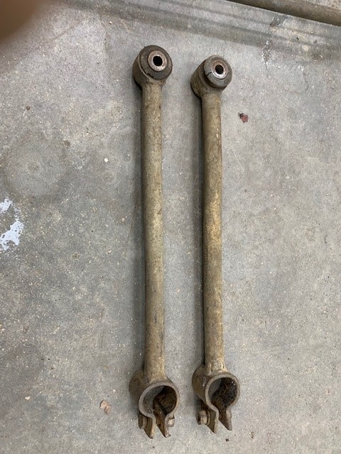 -one NOS sway bar spring perch -one modded (was NOS) sway bar spring perch. (ran on the mini tubbed Nova for a few years... will rework back to stock configuration) -several bars all the same -two different styles of uprights QUESTION IS; Which uprights would be correct for 71-72 Nova ?? Lower clam shell straight down or 90 degrees The 90 degree uprights have a little dog leg offset to them. All dimensions check out -center pins 43" (matches the diff) uprights approx. 25-1/2 centers (matches the body) Thanks for any input guys ! Gary
