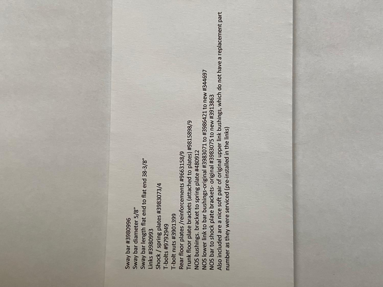Perfect for your SS or YENKO. Correct factory angle cut spring / shock plates, links and the elusive rear floor reinforcement plates with brackets attached. What's pictured is what you'll receive See last pic for list of items included Would prefer for buyer to pick up (in Wisconsin) Will ship if requested to lower 48 United States mailing addresses ONLY Price : Reduced to $2000.00 shipped. I don’t do PAYPAL Payment by US POSTAL MONEY ORDERS , cashiers check , certified check or cash on pick up PM with questions, contact info and I'll get back to you ASAP. Thanks for viewing my post. John Last edited by nuts4novas; 02-25-2022 at 11:36 PM. |