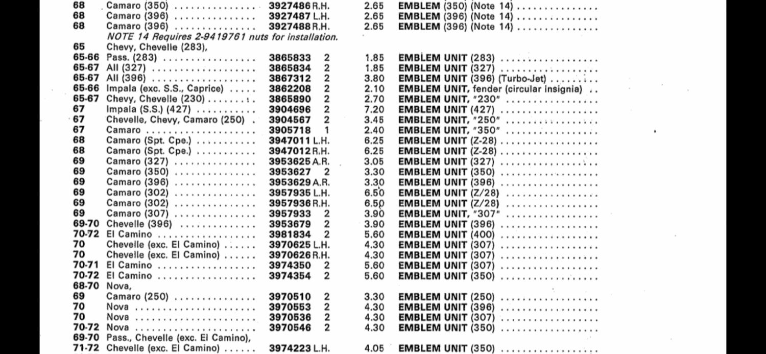 I have found some more of these - absolutely as new from GM - NOS in the original, albeit newer GM boxes as shown. Includes the speed / cut nuts part # 11502547 in the unopened packs and of course, none have ever on the studs of these emblems. Getting harder to find. Cast number is 3948030.