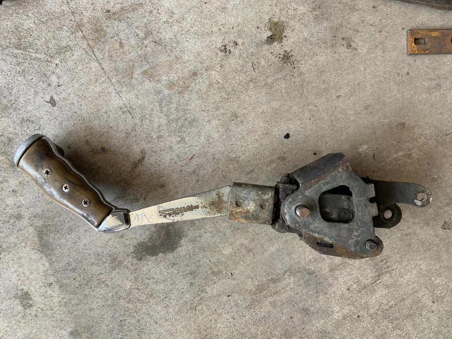 Cleaning out my garage and came across this original early 1970 push-in mounting style, E-Body (Cuda and Challenger) pistol grip shifter with the "7180" stamping on the reverse lever and various parts that I have accumulated. Includes original 6348 B-Body and reproduction E-body mounting brackets as well as a bunch of linkage arms and rods and mounting bolts.
