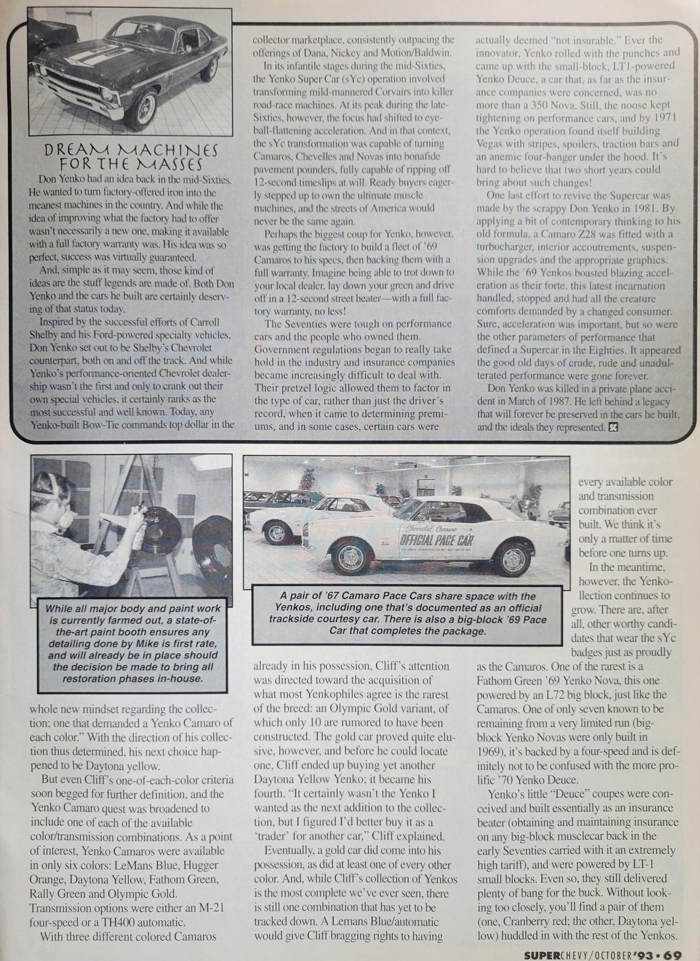 Here's the article about Cliff's Yenko Collection from the October 1993 issue of Super Chevy. I'd love to hear Cliff and Floyd Garrett bench racing!