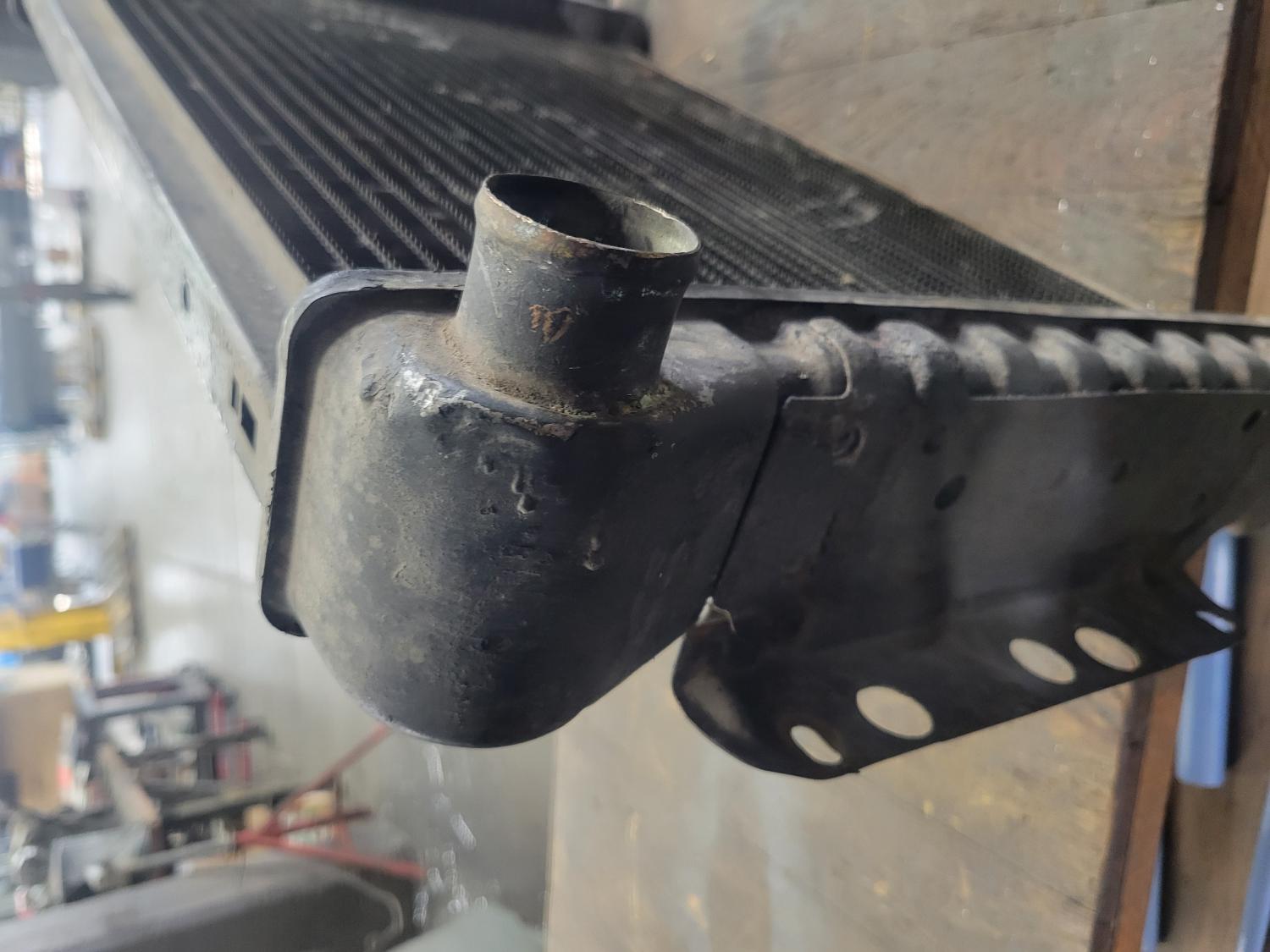 Original unrestored 3 core radiator. Dated L which I believe is November 1968. Some small dings as usual in the top of the driver's tank. Nothing serious. Fill tank looks good. Some surface rust on the original mounting brackets. Peacock moves freely.