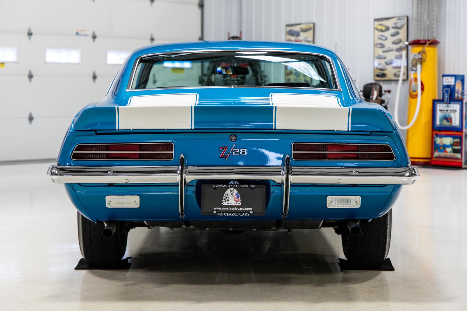$179,900 “MS CLASSIC CARS is known nationally for specializing in show quality first generation Camaro Z28 models that have been certified authentic by experts Jerry MacNeish and Larry Christensen. I'm proud to have owned and sold some of the best examples known to exist which include ten first generation Camaro's that have achieved the Legend Concours Award at the Camaro Nationals. This Larry Christensen certified Lemans Blue 1969 Camaro RS Z28 is an absolutely beautiful example!” – Marc Schiliro This breathtaking 1969 Chevrolet Camaro Rally Sport Z28 has been restored to show quality standards throughout. It was certified authentic by expert Larry Christensen of Mr. Camaro Enterprises on March 8th, 2025. The report and certificate of authenticity is included. Larry is a National Certified Camaro Judge and first generation Camaro restoration expert. He's one of the eight judges for the first generation Camaro Legend Concours Class at the Camaro Nationals. It was featured as a full page advertisement in Car Culture Magazine in 2019 which is included. As the original VIN Tag and Trim Tag indicate this example was built on the 4th week of January in 1969 at the Van Nuys, California factory. It had a Lemans Blue exterior and a black deluxe interior. Some of the other options included (Z22)- Rally Sport, (Z28) – Special Performance, (M21)- Muncie 4-speed manual, (G80)- Positraction and (J52)- front disc brakes. From the information gathered less than 10% of the 20,302 Camaro Z28 models produced in 1969 were equipped with the Rally Sport option which makes this example highly collectible. This car was purchased in 1985 by its last owner who was the caretaker for the last 40 years! From the information gathered the car spent its life in California, Arizona and Texas. The car was the product of a rotisserie restoration that was completed in 2016. It was restored to show quality condition and has less than 200 miles since completion. A few miscellaneous receipts and photos of the restoration are included. MS CLASSIC CARS purchased this car directly from the last owner in April of 2025. MS CLASSIC CARS invested a total of $32,941.32 in service and detail which is documented with an invoice that's included. September of 2025 is the first time MS CLASSIC CARS has listed it for sale. The exterior of this car is absolutely beautiful with its iconic factory design and color combination. From the information gathered this car retains most of its original sheet metal. During the restoration process a cowl inducted hood and rear spoiler were added which is common. Many Z28 models were originally ordered with a flat style hood and without a rear spoiler. The body was taken to bare metal and prepped to be straight with excellent gap lines. The hood, doors and trunk close very nicely. It was refinished in its original color of Leman Blue (Code 71) and was decorated with white racing stripes. This is a very desirable color for collectors. Over the last 9 years the paint had some imperfections so MS CLASSIC CARS invested a total of $15,000.00 taking the paint to a higher level. This process included sanding down the color and respraying it which also included the clear coat. The team at MS CLASSIC CARS recently detailed the high quality paint to a glossy appearance which looks amazing! It was outfitted with all new tinted glass with Soft-Ray Safety Flo-Lite stamps. The new glass includes the front windshield, door windows, quarter windows and rear windshield. Everything on the exterior was restored or replaced new such as the glass stainless trim, wiper arms, antenna, front grill, headlights, front bumper, parking lights, front spoiler, driver's mirror, door handles, lock cylinders, rocker panel moldings, quarter trim, tail lights, rear bumper and emblems. The 15” Rally wheels were decorated with new trim rings and center cap. The wheels are mounted to new Firestone Sport Car 200 E70-15 4-ply nylon cord tires that were installed by MS CLASSIC CARS during the service process. Everything on the exterior is in working order including the vacuum operated hide-a-away headlights. Please note the previous didn't want wheel moldings which were standard with the Rally Sport Package. If new owner desires to have new wheel moldings installed MS CLASSIC CARS will do so at no charge. The interior of this car is also in beautiful condition throughout. It was stripped to a bare shell and reassembled. It was refinished in its original black deluxe trim (Code 712) with simulated wood accents on the dash, console and steering wheel. Some of the deluxe interior features include the comfort weave upholstery, molded door and rear panels, grab handle and headrests. During the installation of the new upholstery extra padding was added for comfortability. The interior is the perfect blend of luxury and sport. Everything in the interior was restored or replaced new including the headliner, dome light, rear view mirror, dash, gauges, heating controls, radio, steering column, steering wheel, console with gauges, Hurst shifter, door sill plates, door hardware, seat belts, pedals and carpeting. It was recently outfitted with new correct style black rubber floor mats. The trunk compartment was completely restored and refinished in the correct style splatter paint. It was outfitted with a plastic trunk mat. It's equipped with a new full size spare and jack tools that were installed by MS CLASSIC CARS. The engine compartment is highly detailed throughout. This is one the cleanest and most detailed engine compartments of any 1969 Camaro Z28 ever offered from MS CLASSIC CARS. The car is powered by the original matching numbers DZ302 V8 engine. The engine was completely rebuilt by Hill Country Performance and Machine. During the service process at MS CLASSIC CARS removed the engine and installed a correct set of 186 casted cylinder heads. MS CLASSIC CARS also had the correct #4053 Holly carburetor dated 912 professionally restored. D