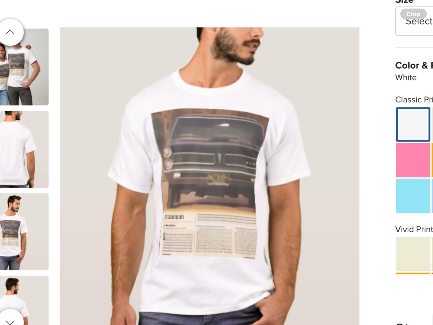 Btw, Zazzle is a good place to make a custom shirt, with your car or whatever. It’s pretty cheap and fast.