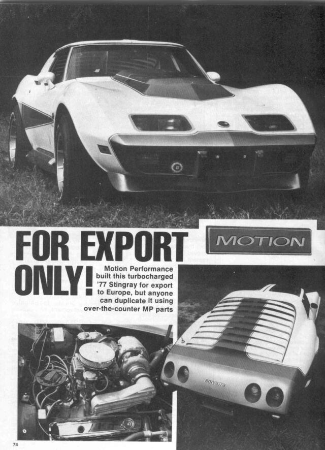 Motion Performance built this turbocharged '77 stingray for export to Europe, but anyone can duplicate it using over-the-counter MP Parts. over-the-counter MP Parts ?? |