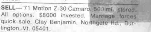 Old ads with a 1971 Camaro Motion Z/30 [img]/ubbthreads/images/graemlins/biggthumpup.gif[/img]